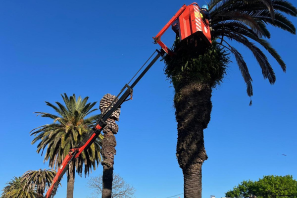 Se trata de 10 ejemplares que se encuentran en estado crítico por el picudo rojo. Hay desvíos en el tránsito.